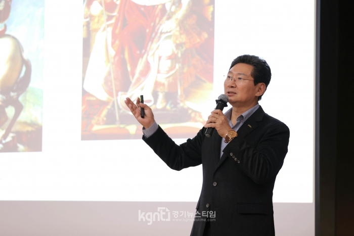마지막으로 이상일 시장은 아르침볼도의 이중그림 ‘봄·여름·가을·겨울’과 한국 화가 김동유의 이중그림 ‘케네디와 마릴린 먼로’, 공제 윤두서의 자화상과 영화 ‘관상’의 포스터를 보여주며 과거 화풍이 어떻게 현재에도 영향을 미치고, 영감을 주는지 설명하며 강의를 마쳤다.